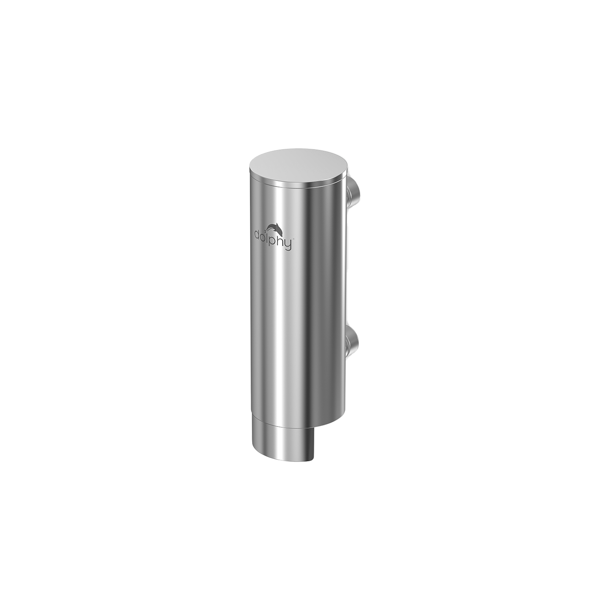 Dolphy manual soap dispenser with 400 ml capacity, crafted from 304 stainless steel and ABS container in a sleek silver finish. Designed for wall-mounted installation, it dispenses 1–1.5 ml per press, making it ideal for compact washrooms, kitchens, and commercial spaces.