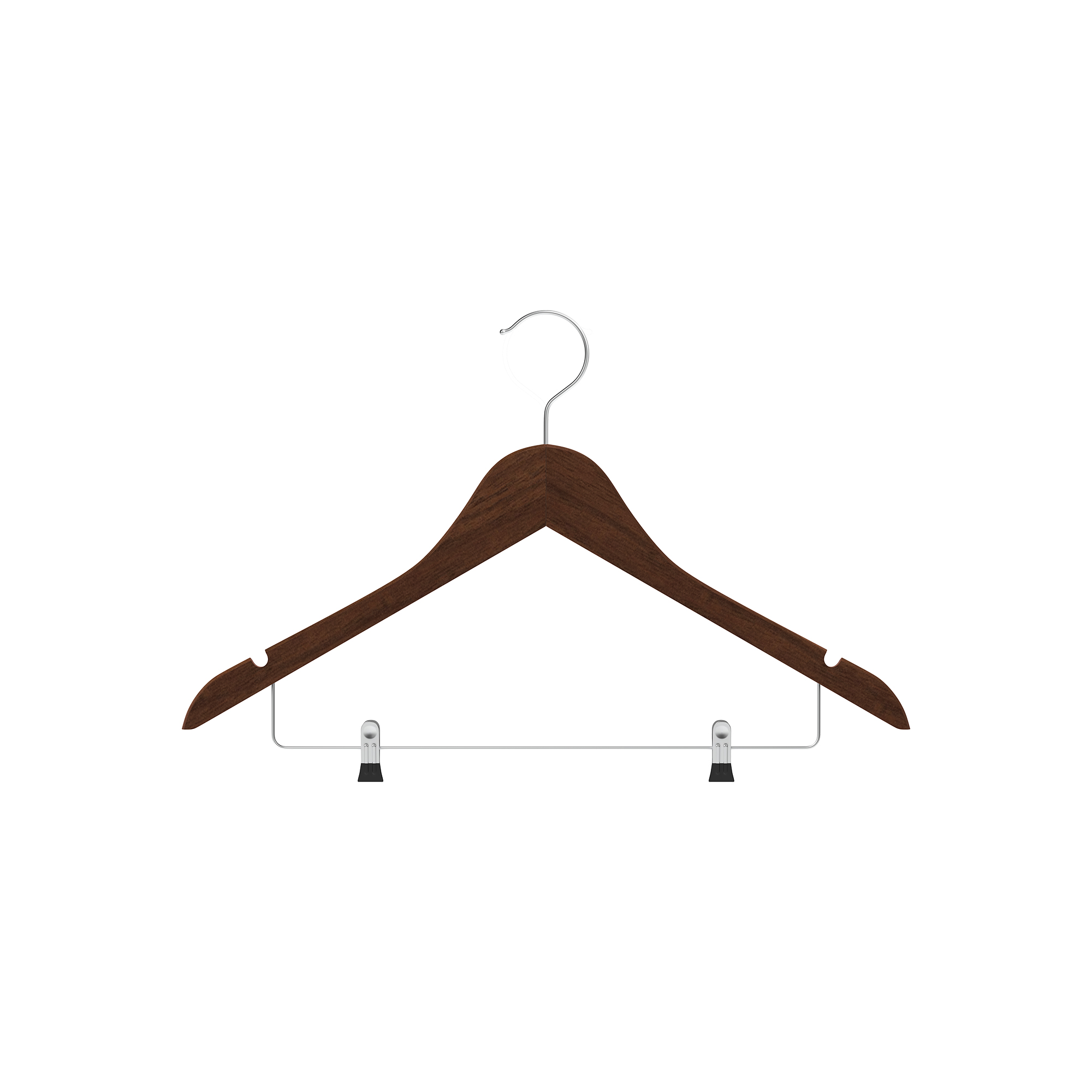 The DHGR0008 is a 445 mm lotus wood hanger, available in natural, brown, and black finishes. Featuring two clips for secure clothing storage, a matte finish, and anti-theft hooks, it combines functionality with added security.