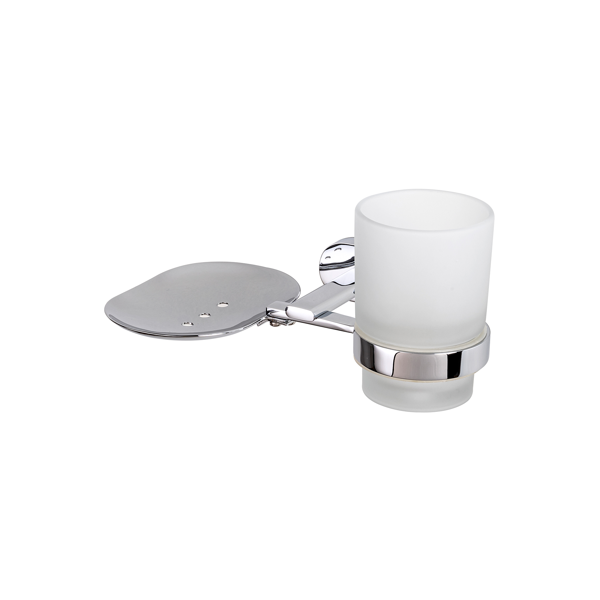 Dolphy Soap Dish with Tumbler Holder (DBMO07) is a premium brass bathroom accessory combining style and functionality. Measuring 202×125×95mm, it provides an elegant solution for organizing soap and tumblers in luxury washrooms. Ideal for upscale hotels and residences.