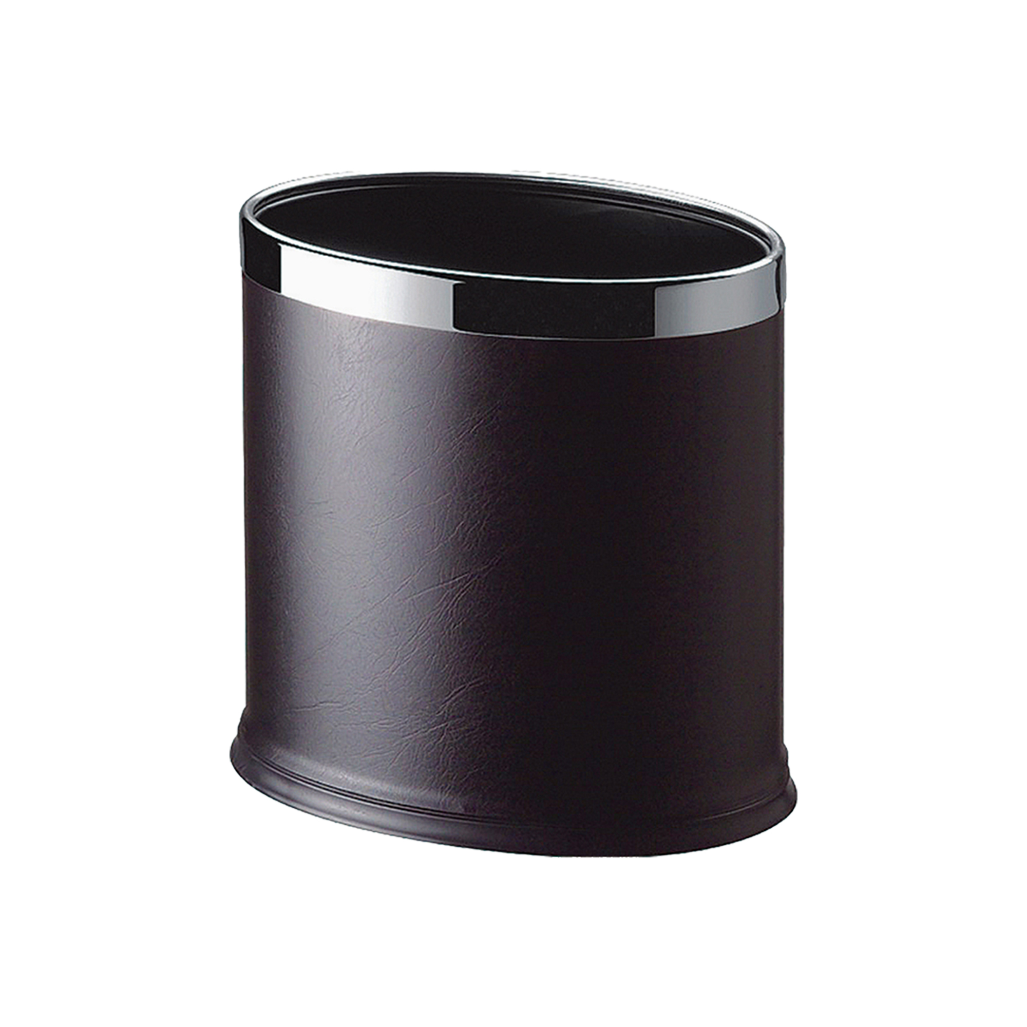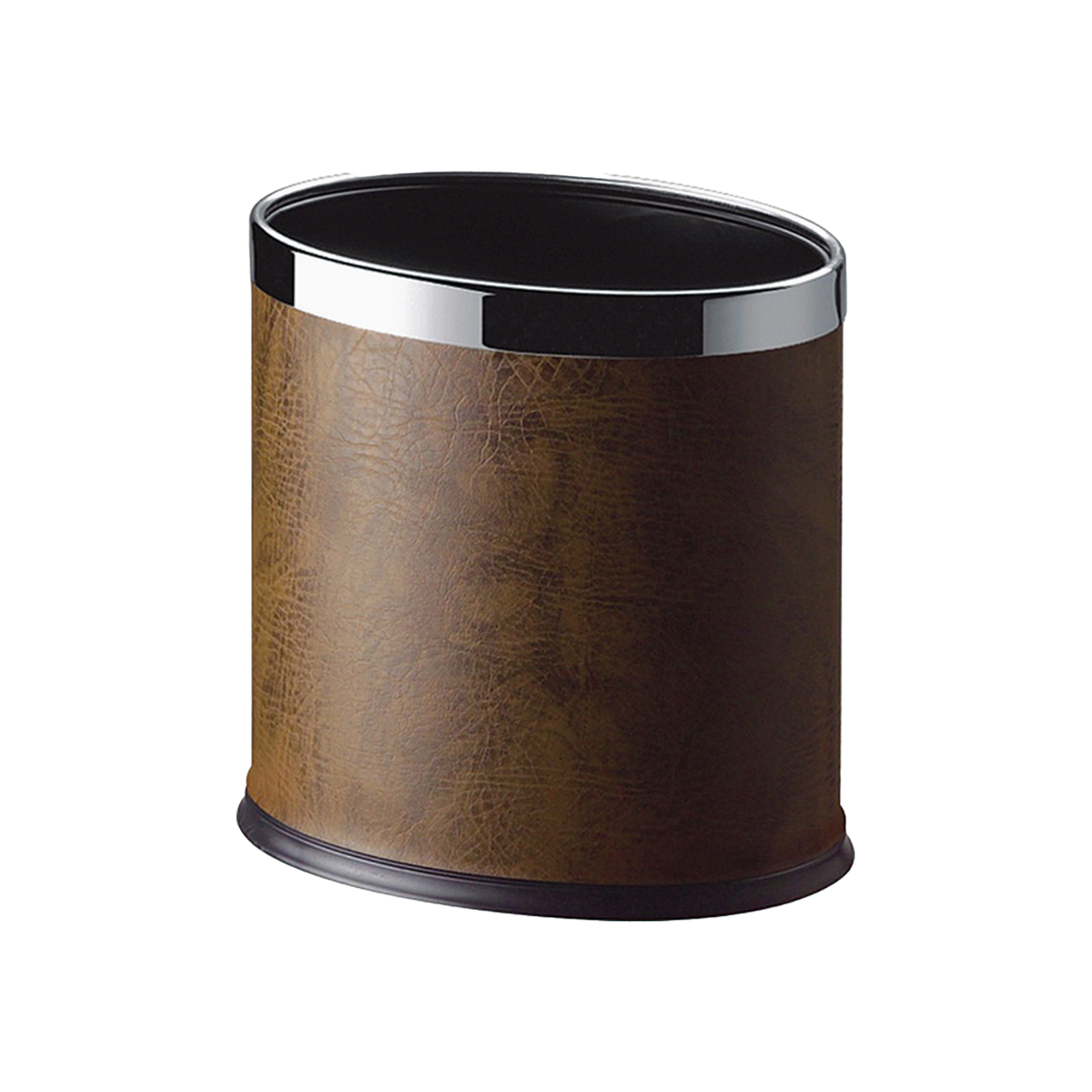 Models DWBN0004-BR (Brown) and DWBN0004-BL (Black) are 8-liter oval open-top bins crafted from iron and leather. Designed with a sleek double-layer structure and anti-slip rubber base, they’re ideal for upscale hotel and resort environments.