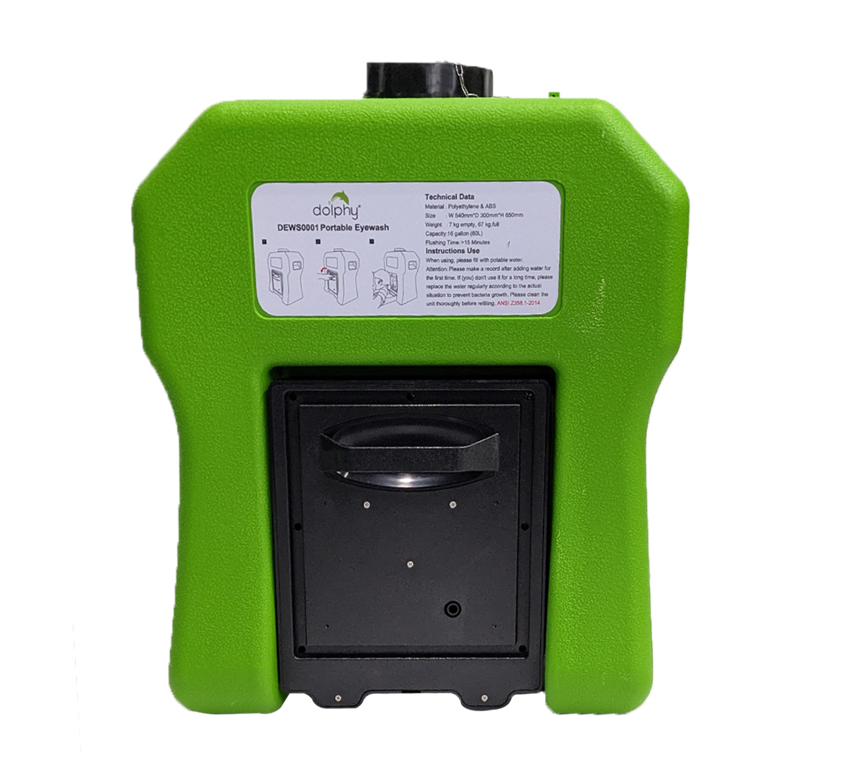 The Portable Eye Wash Station is designed to provide immediate relief for individuals exposed to harmful substances or debris in their eyes. It is a compact, green device with a practical setup for easy deployment in emergencies.