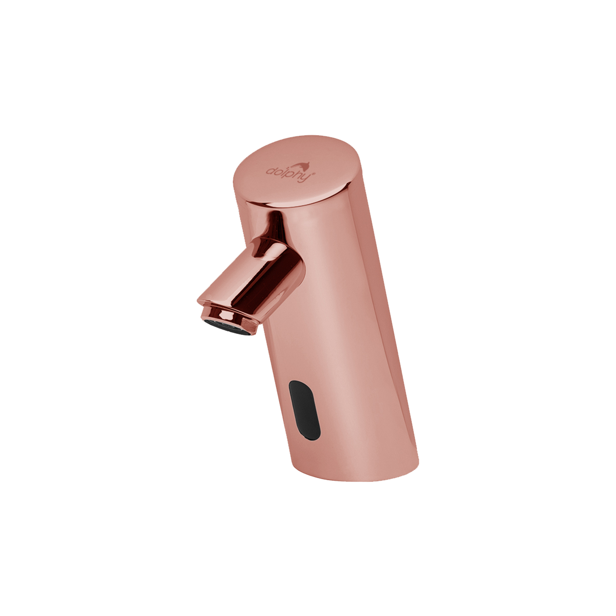 Elegant Rose Gold Automatic Sensor Faucet with infrared technology for touch-free use. Offers dual power operation and efficient water flow for premium washrooms.