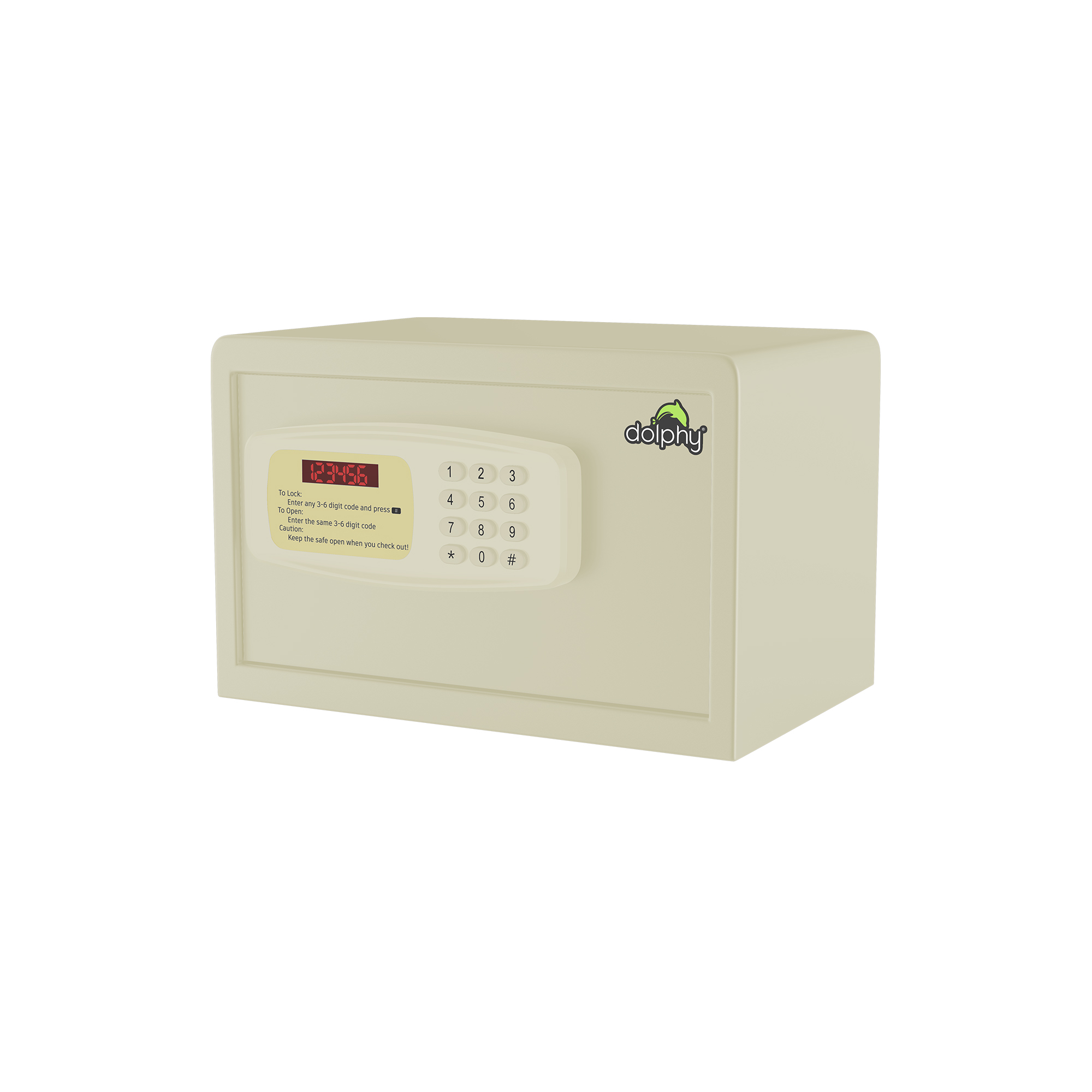 Model DEHS0009 is a white electronic safe made from cold-rolled steel with a powder-coated finish. Compact and secure, it measures 310 x 200 x 200mm, weighs 6.1 kg, features a 1.5mm body, 5mm door, LED display screen, and runs on 4 AA batteries (not included).