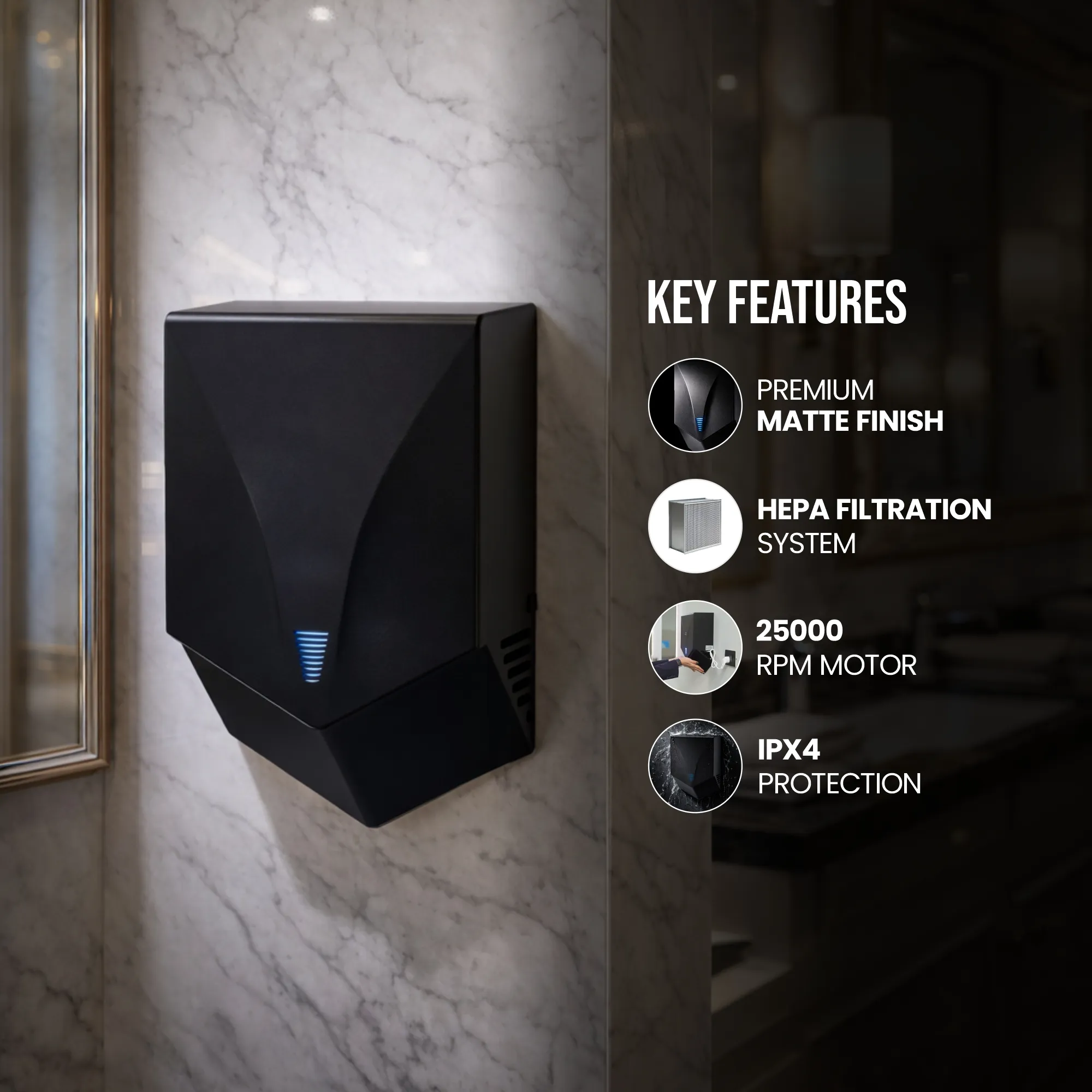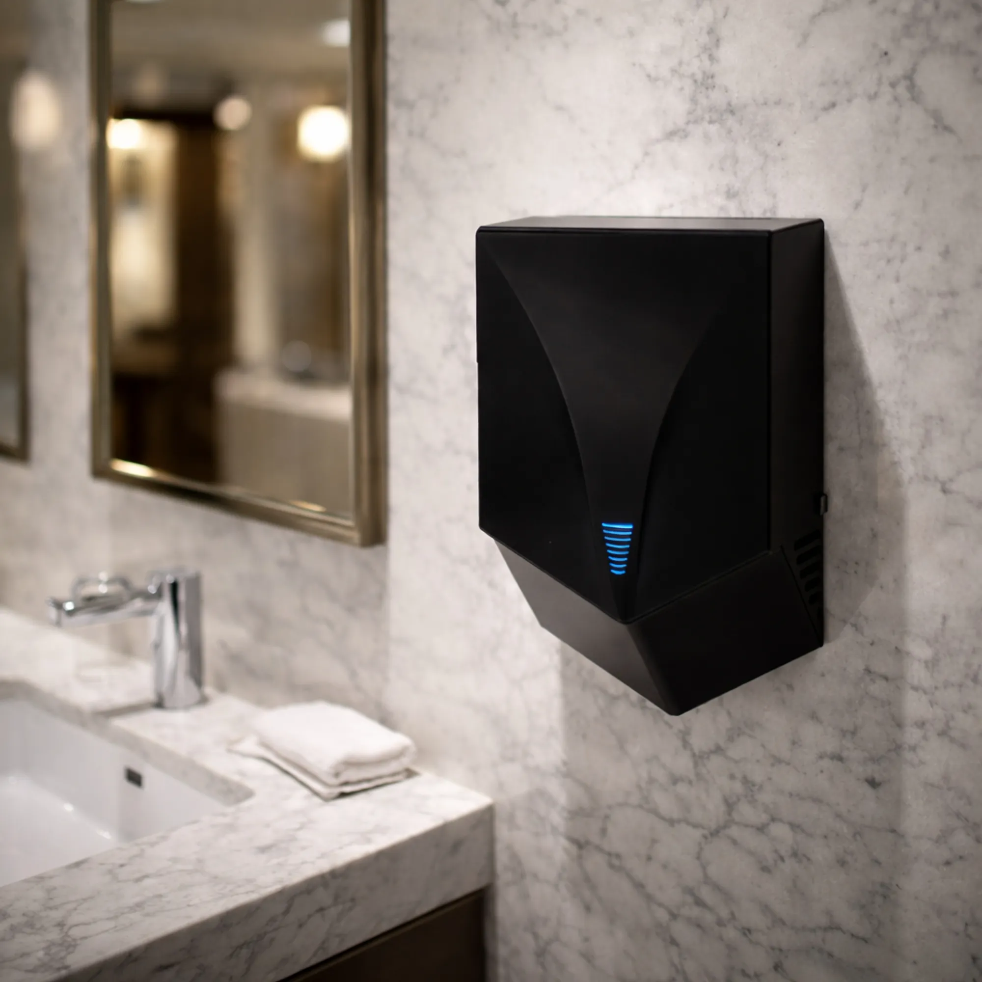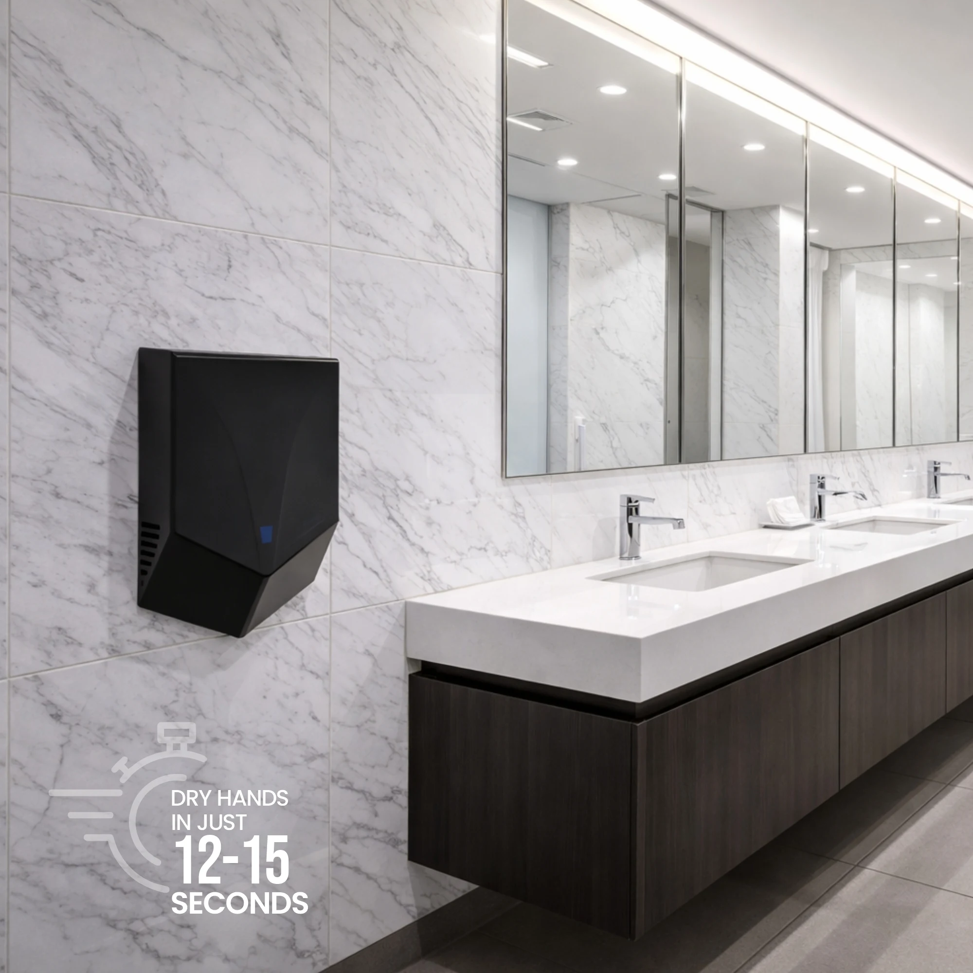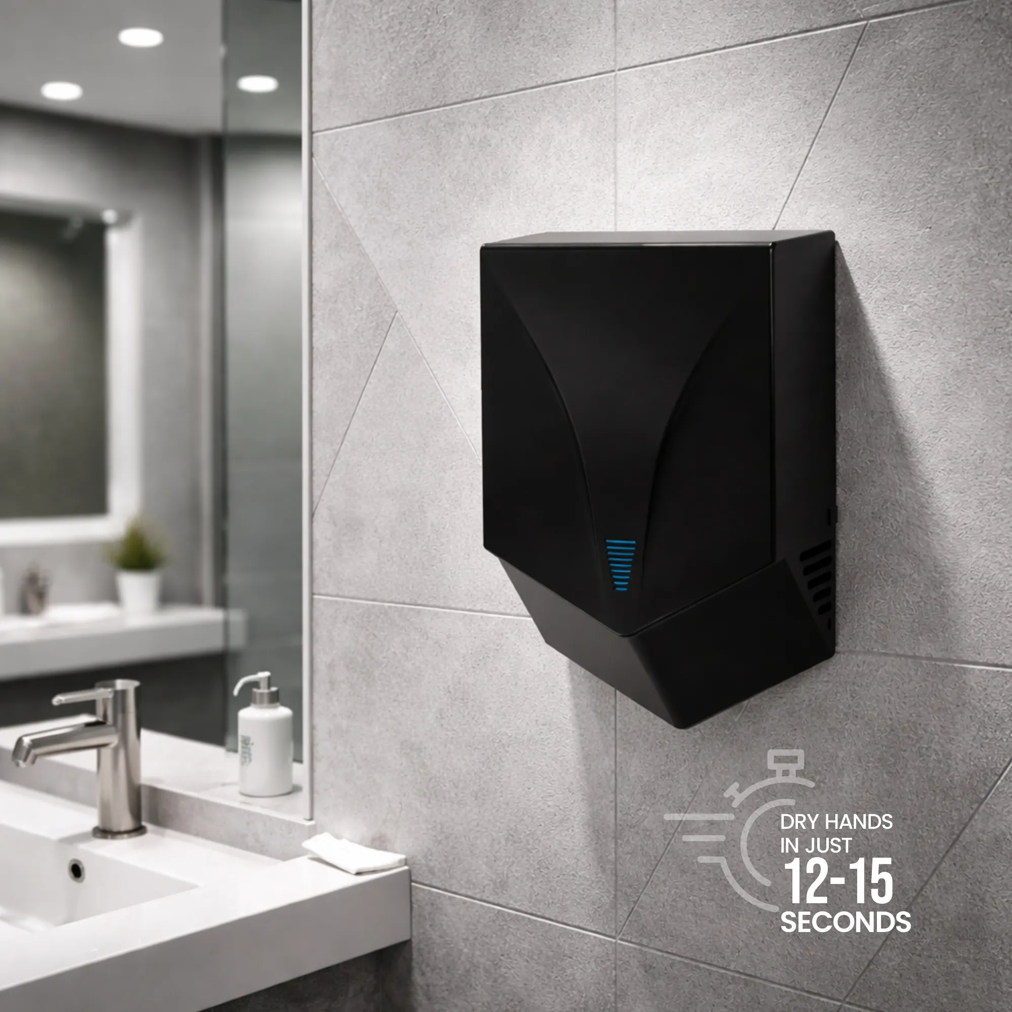 “Dolphy Air Blade Jet Hand Dryer (DAHD0055) provides fast and hygienic hand drying in 12–15 seconds with touch-free infrared activation. Made from high-grade ABS with 90 m/s airflow, IPX1 waterproof design, and brush AC motor, it’s ideal for hotels, offices, and commercial washrooms.”